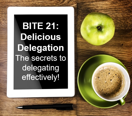 Bite 21: Delicious Delegating. Delegation can go wrong in many different ways. If you want to make sure when you delegate something, it gets done to deadline and how it needs to be done – then this bite will take you through the secrets of delicious delegating. From someone who got it wrong and learned from her mistakes!! You’ll also get some brilliant delegating tools to use.